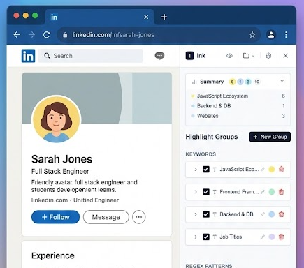 A Chrome extension for recruitment professionals to quickly scan profiles, resumes, and job postings for key information. Supports keyword matching, regex patterns, and intelligent profile management.